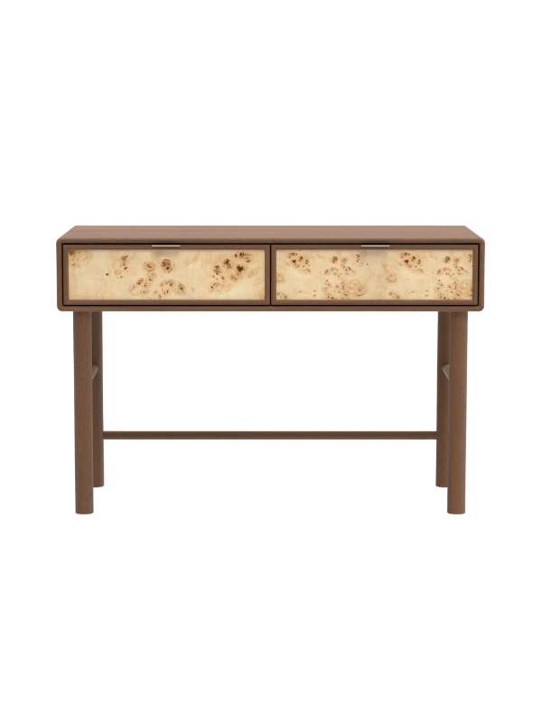 Burl Wood Two Drawer Console Table – Walnut