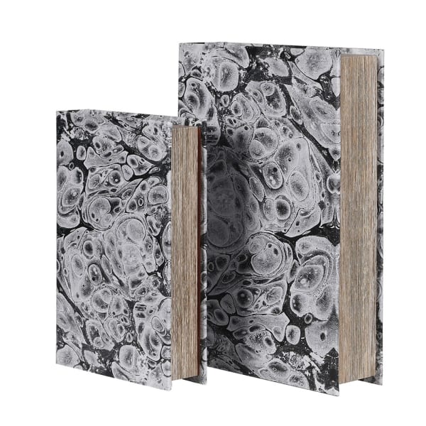 Book Boxes – Black and White Water Marble (Set of 2)
