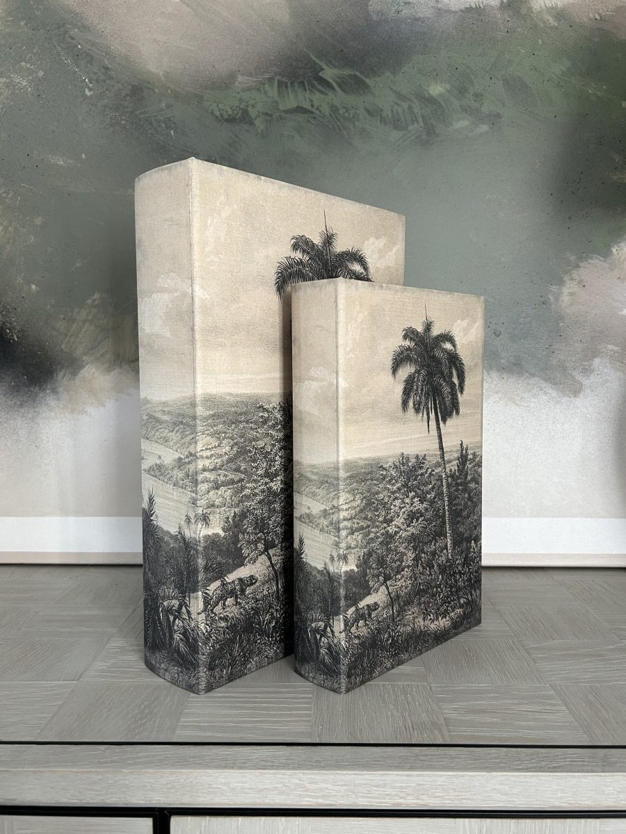 Add a touch of vintage charm to your space with our Set of 2 Palm Tree Book Boxes. Featuring a soft, neutral colour palette and classic palm tree illustrations, these decorative boxes blend seamlessly into coastal, boho, or rustic interiors.