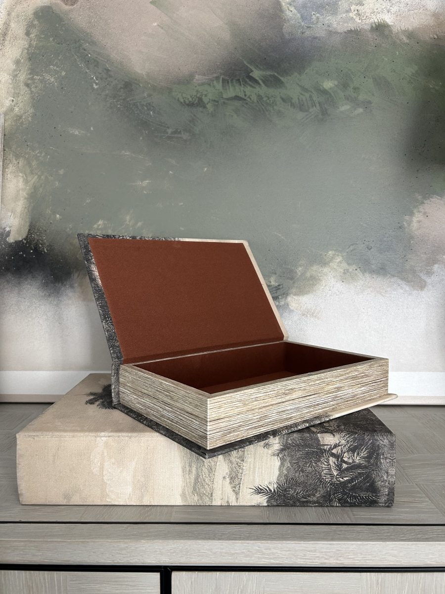 Designed to look like stylish hardcovers, these decorative boxes open to reveal hidden compartments, perfect for storing notes, remotes or keepsakes. Their sleek, monochrome palette makes them a standout in both minimalist and contemporary interiors. Stack them on a coffee table, shelf or desk for functional storage with artistic flair.