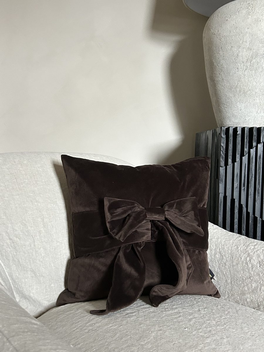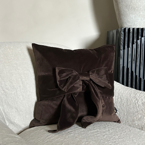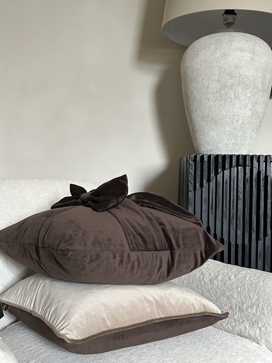 This luxury cushion is the perfect accessory for modern, classic or eclectic interiors. Whether styled on a sofa, bed, or accent chair, it adds depth, texture, and a sophisticated finish to any room. Crafted for both comfort and style, the Brown Velvet Bow Cushion is a must-have for those who appreciate high-quality designer home accessories.