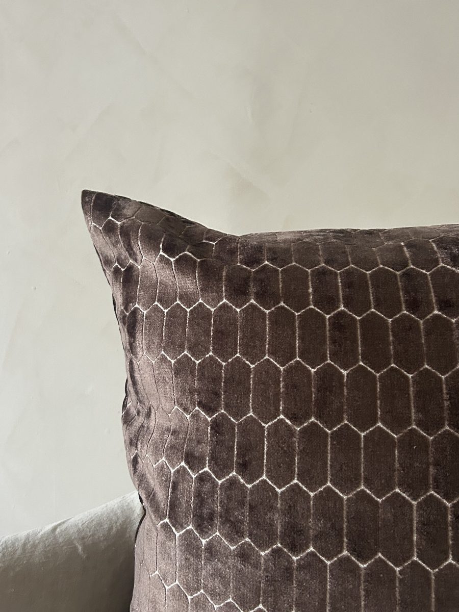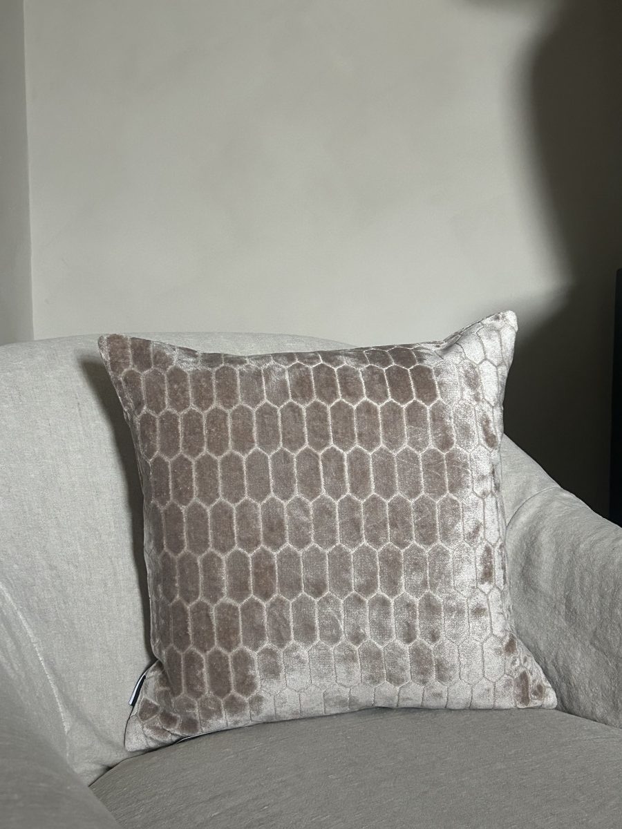 Add a touch of style and comfort to your living space with this hexagonal design velvet cushion, complete with subtle textured detailing.