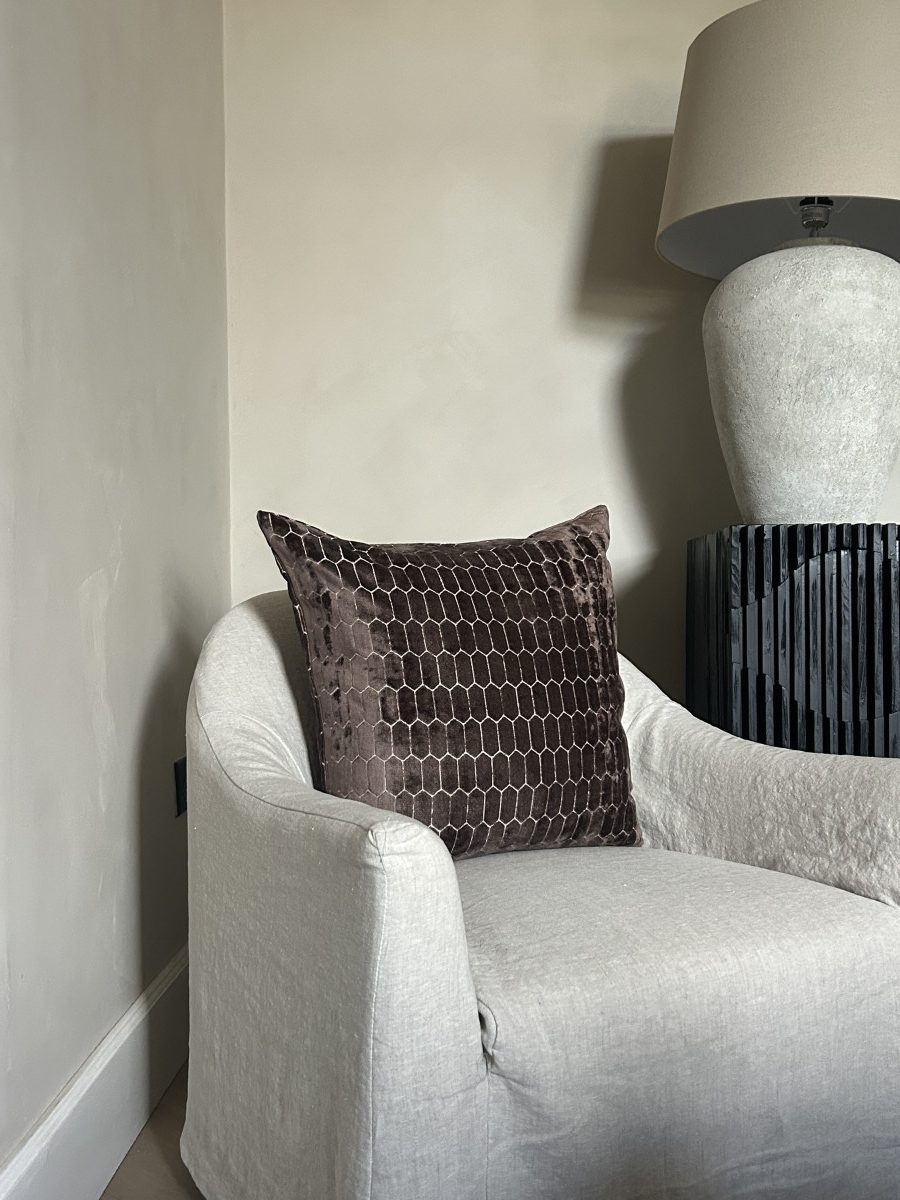 Available in two sizes – 43x43cm and 56x56cm – it’s perfect for layering on sofas, beds or accent chairs. The feather insert ensures lasting comfort and shape retention. The Chocolate Brown Albie Velvet Cushion combines luxury and versatility, making it a must-have for creating a serene and stylish atmosphere in your home.