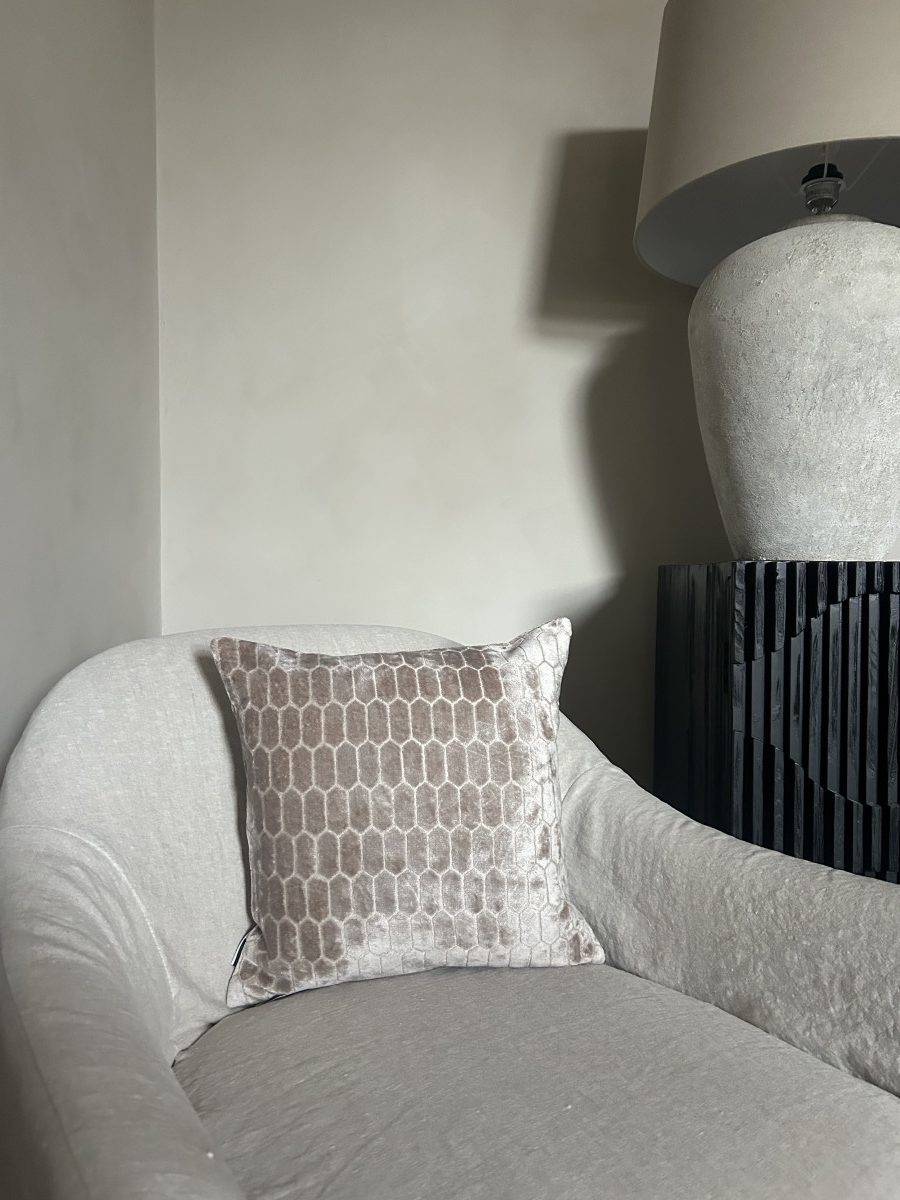Available in two sizes – 43x43cm and 56x56cm – it’s perfect for layering on sofas, beds or accent chairs. The feather insert ensures lasting comfort and shape retention. The Ivory Hookup Cushion combines luxury and versatility, making it a must-have for creating a serene and stylish atmosphere in your home.