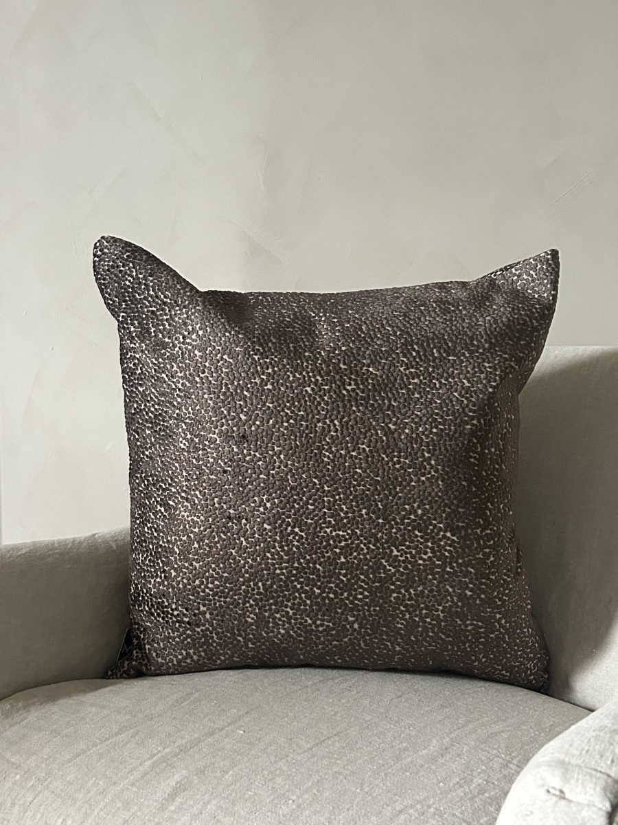 Elevate your living space with the Mocha Arjan Cushion, a handcrafted statement piece that blends minimalist charm with rich texture.