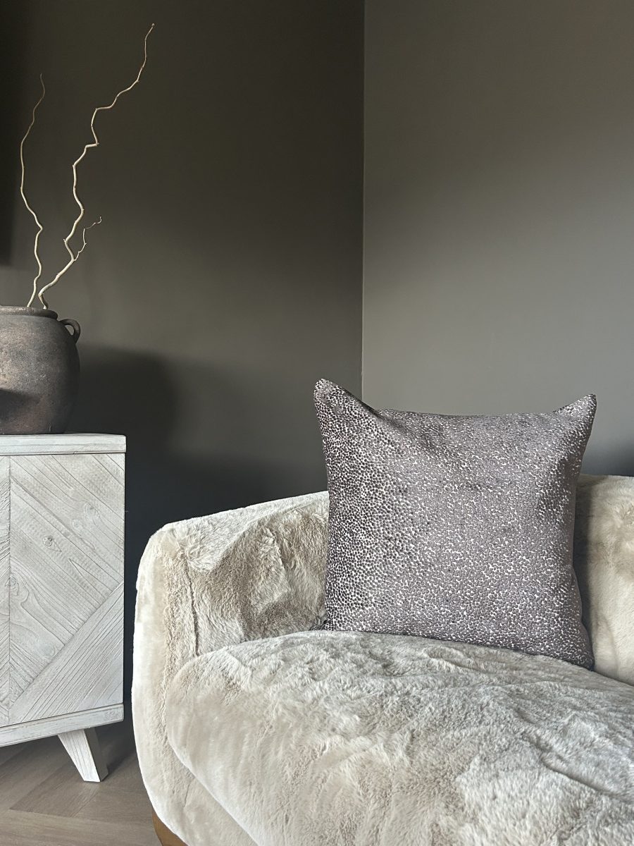 Available in two sizes – 43x43cm and 56x56cm – it’s perfect for layering on sofas, beds or accent chairs. The feather insert ensures lasting comfort and shape retention. The Taupe Albie Velvet Cushion combines luxury and versatility, making it a must-have for creating a serene and stylish atmosphere in your home.