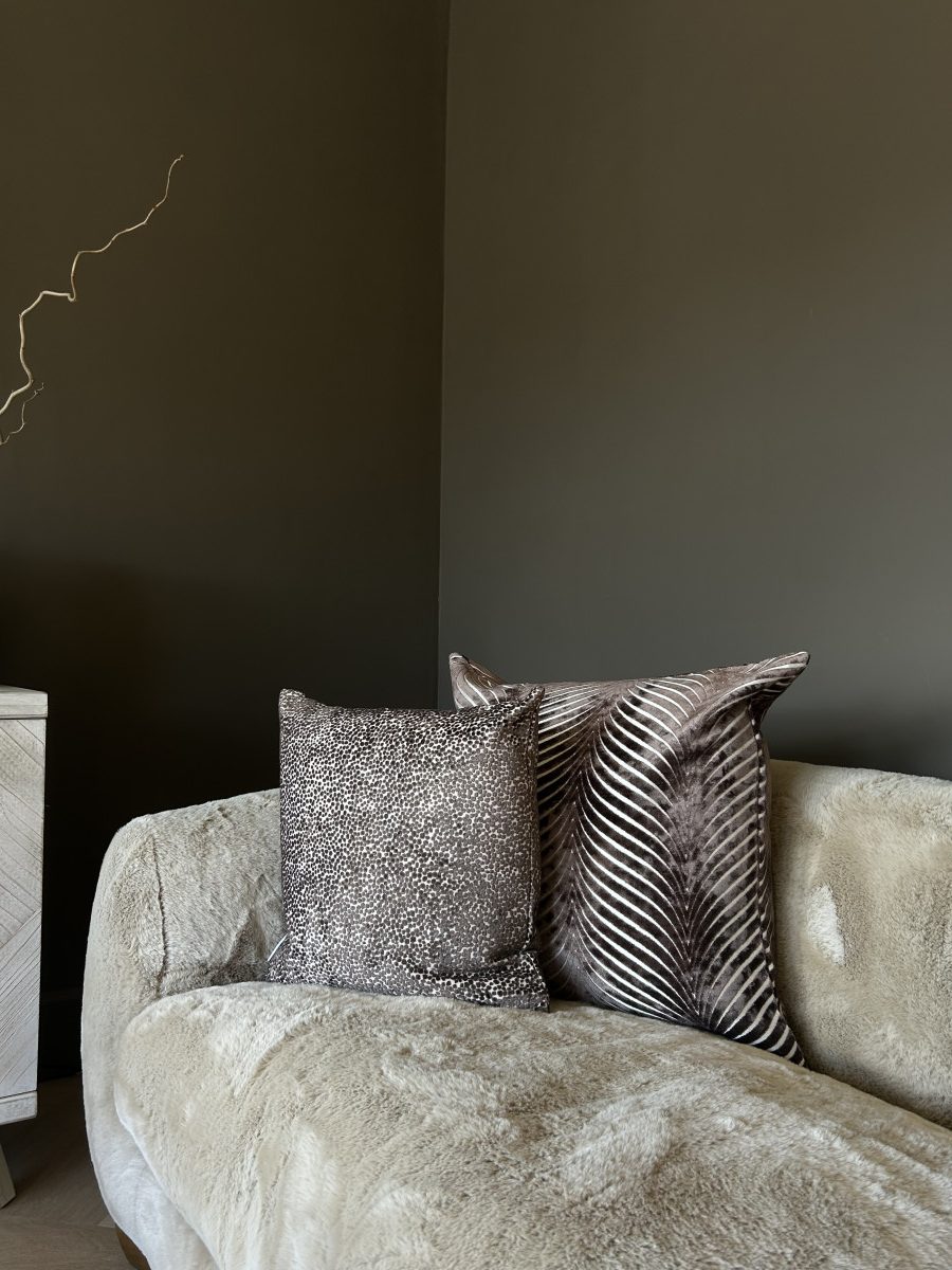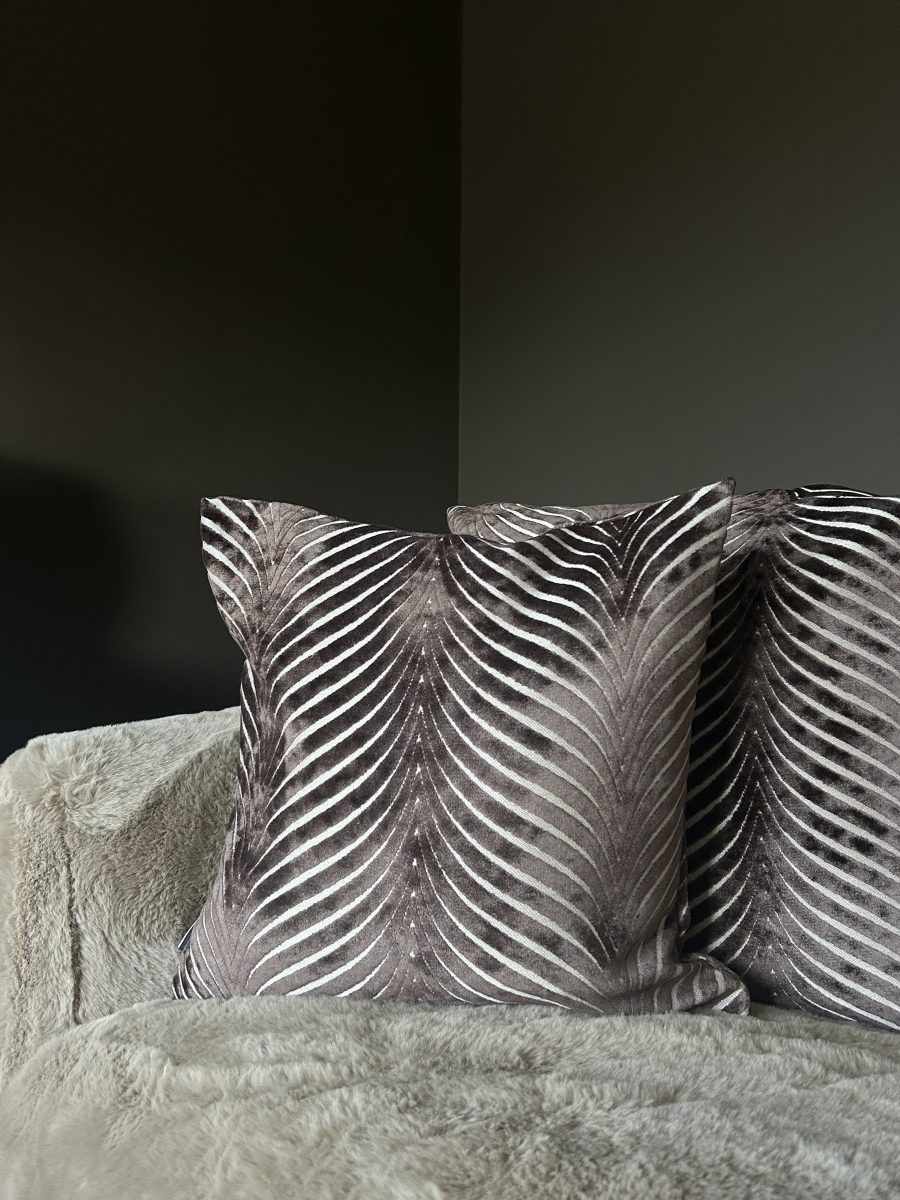 Available in two sizes – 43x43cm and 56x56cm – it’s perfect for layering on sofas, beds or accent chairs. The feather insert ensures lasting comfort and shape retention. The Taupe Rada Velvet Cushion combines luxury and versatility, making it a must-have for creating a serene and stylish atmosphere in your home.