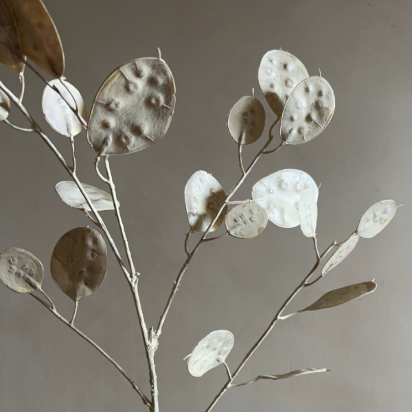This timeless Cream Honesty Spray is super realistic, with a twig stem, they make a great statement on their own or added in with some faux flowers.