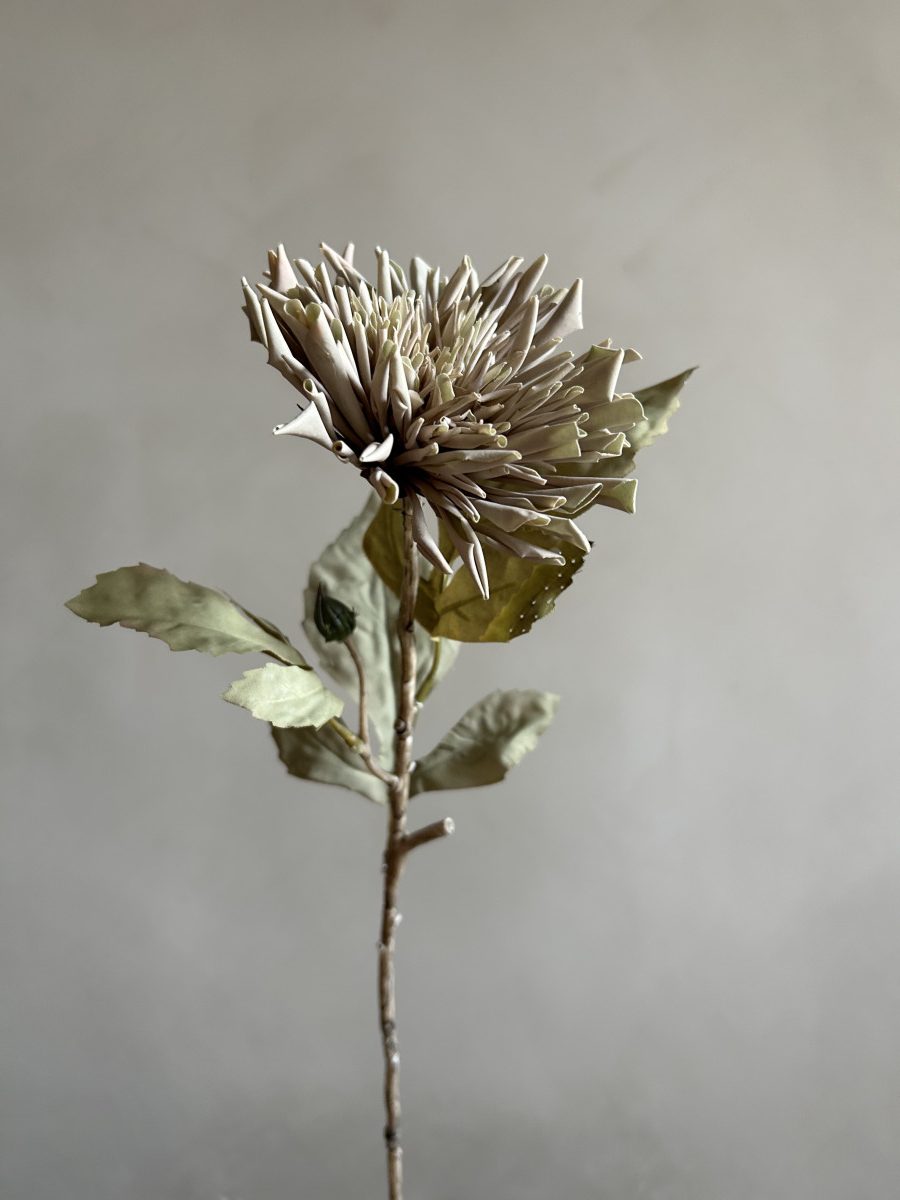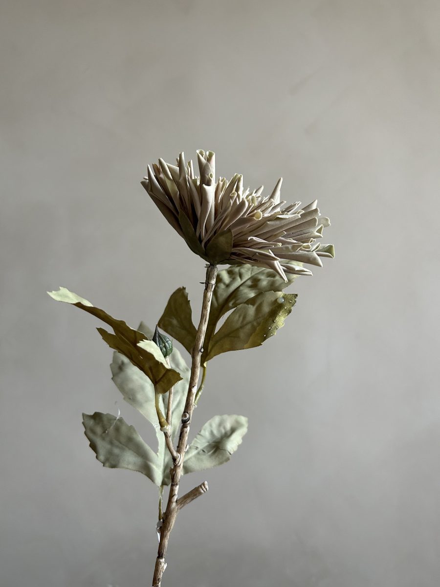 Add a subtle botanical touch to your home with this beautifully detailed artificial dahlia stem in beige and soft green. With its realistic petals, textured leaves and elegant muted tones, it’s the perfect stem to be styled alone in a simple vase or combine it with other stems for a bespoke arrangement. A timeless decorative accent that brings nature indoors, without the maintenance.