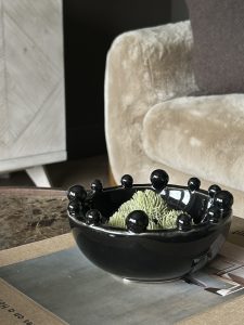 Add a touch of playful sophistication to your space with our Mini Black Bobble-Edged Bowl.