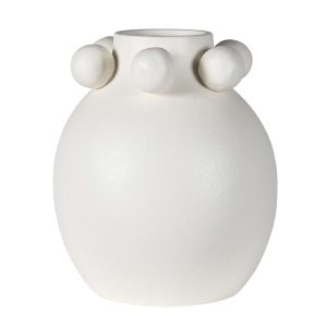 Bring playful texture to your space with the Bria Bobble Vase. Featuring raised bobble detailing around the neck and a smooth, rounded silhouette, this sculptural matte-white vase adds modern dimension to any room.