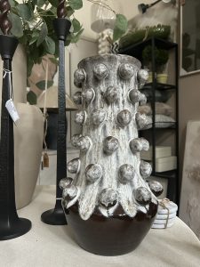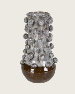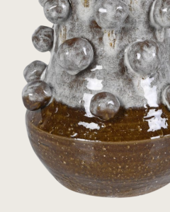 Add sculptural character to your interior with this textured ceramic vase, designed to make a statement from every angle. Featuring a striking bubble relief surface and a brown and neutral reactive glaze, this decorative vase blends artisanal craftsmanship with contemporary style.