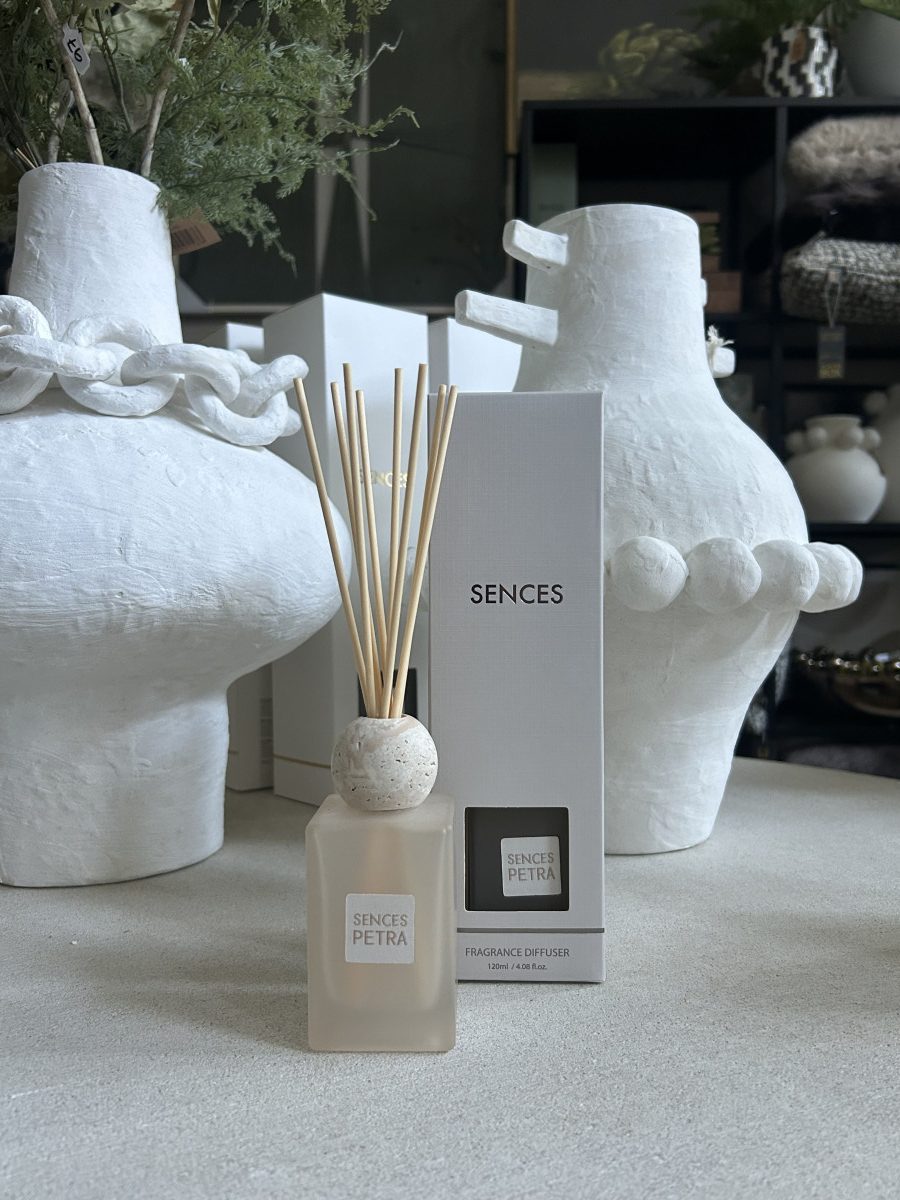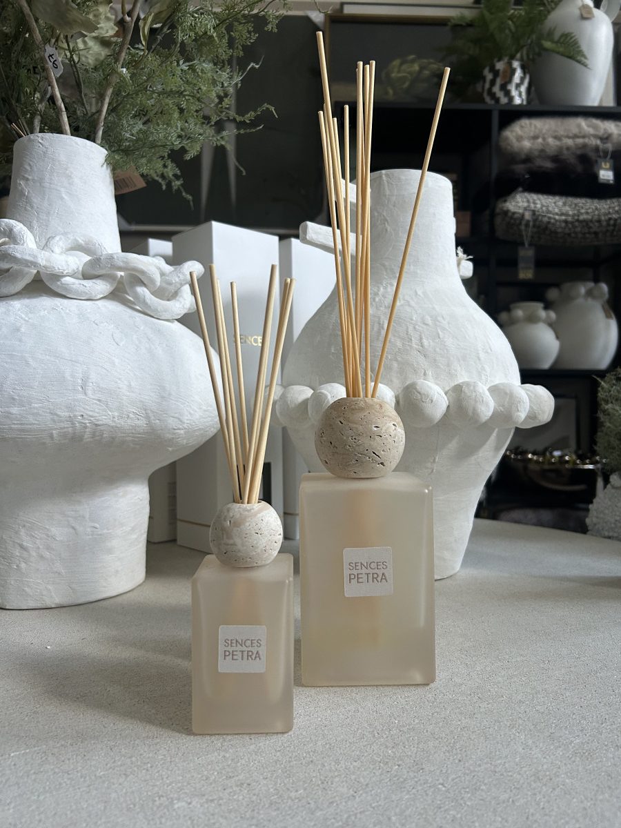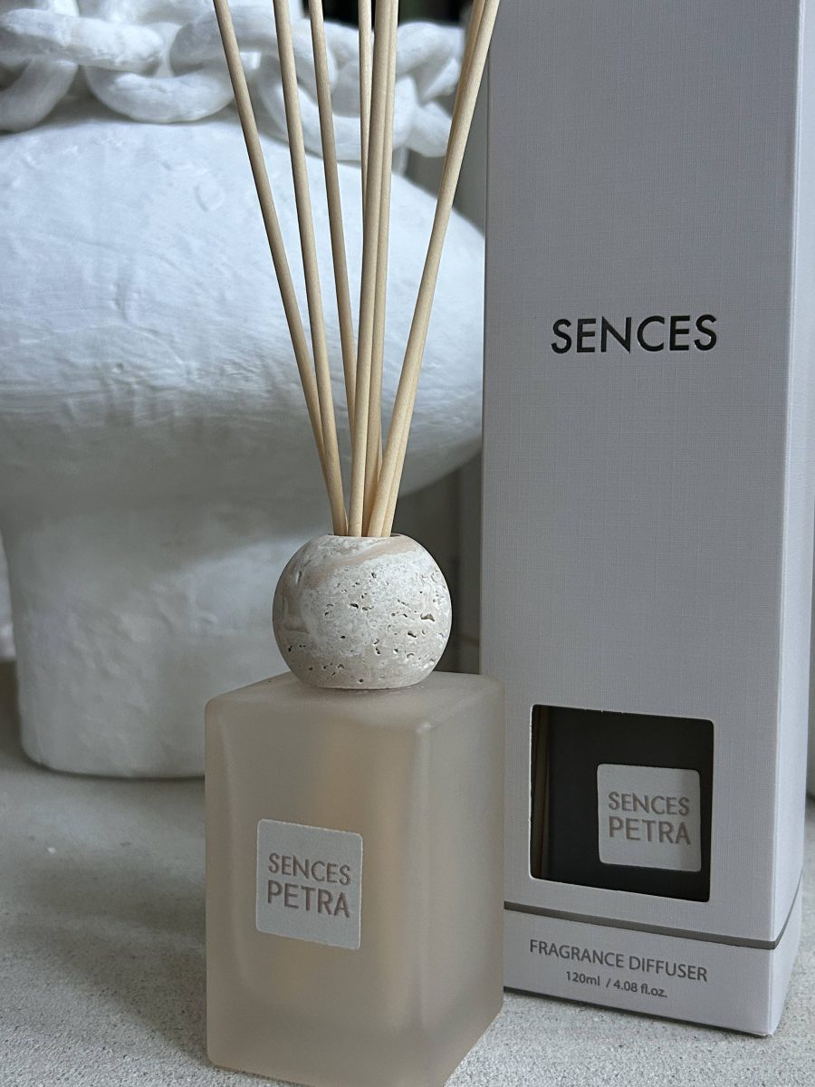 Each diffuser is topped with a solid natural travertine lid, reflecting Petra’s namesake meaning “rock” and visually echoing the diffusers earthy fragrance profile. The warm, mineral-toned lid complements both the aromatic blend and your home’s refined décor, making it a statement piece in any interior space.