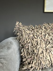 Tan Leather Strips Cushion