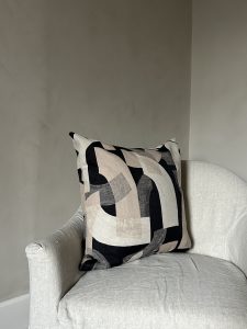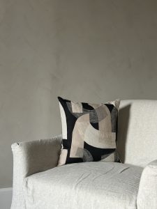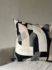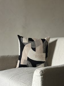 Make a bold statement with the Vance Natural & Black Abstract Design Cushion.