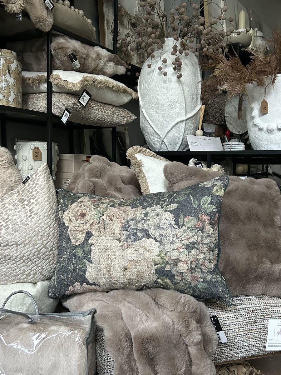 Crafted with premium woven fabric, the cushion showcases a bouquet of muted roses, hydrangeas and leafy greens in warm, antique tones. Whether styled on a sofa, armchair, or bed, it adds texture, comfort and a touch of vintage-inspired luxury.