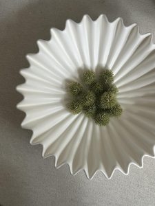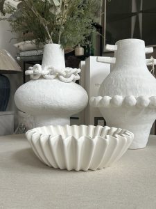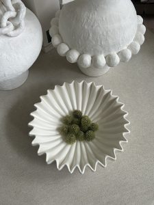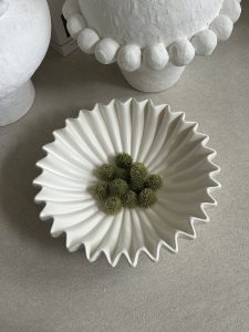 Finished in a soft, chalk-white ceramic, its distinctive waved edge creates movement and texture, making it both visually striking and functional. Perfect as a statement centrepiece on a dining table, console or coffee table, it can be styled empty for a sleek, minimalist look or filled with decorative accents for extra charm. Its versatile design complements both contemporary and classic interiors, making it a must-have for modern tableware and home décor.