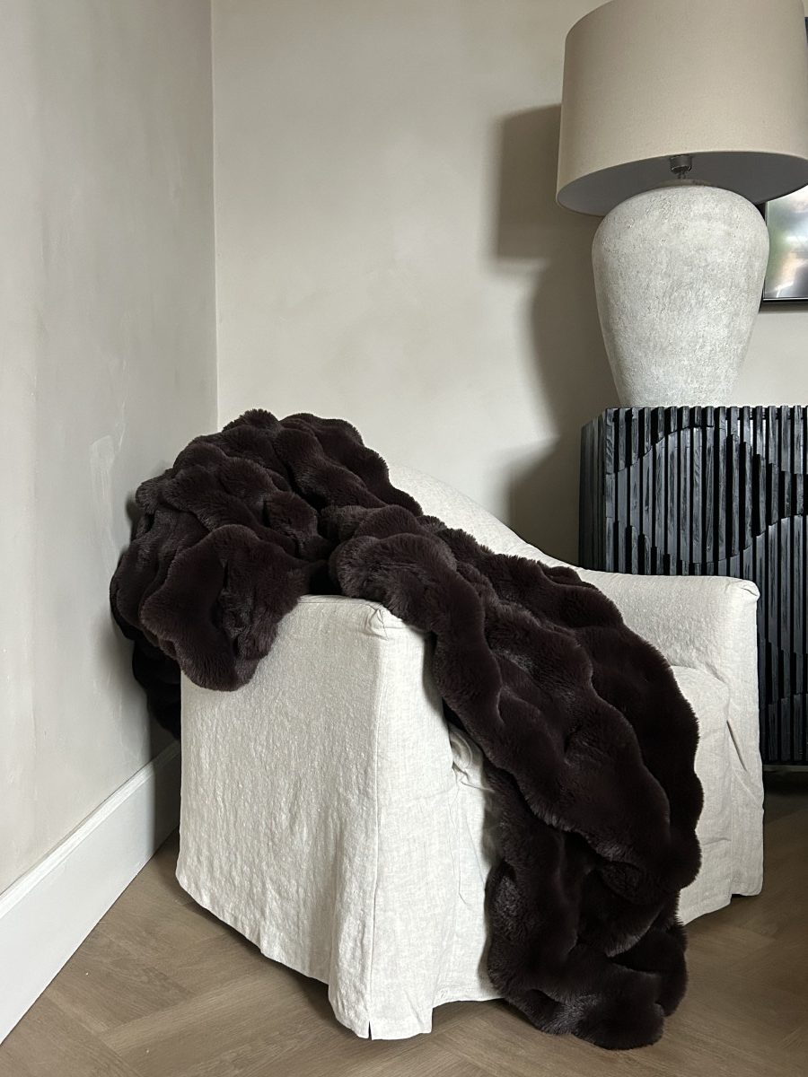 Elevate your living space with the Chocolate Brown Raffles Faux Fur Throw. Designed in premium faux rabbit fur, this luxurious throw adds instant warmth and sophistication to your home. The rich chocolate tones create a cosy, inviting atmosphere, blending seamlessly with both contemporary and classic interiors.