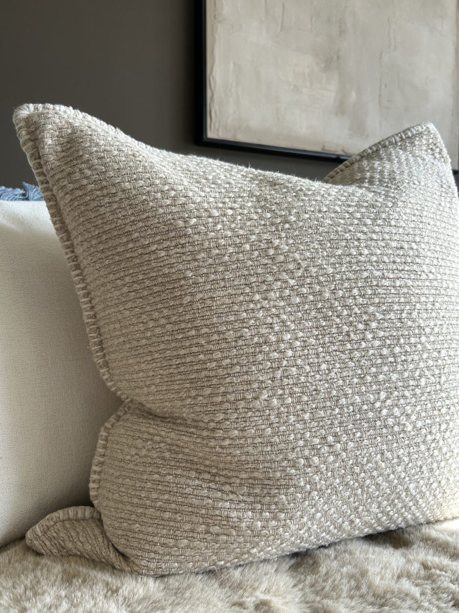 Featuring a beautifully textured woven design with subtle raised detailing, this cushion brings depth and a tactile finish to your décor. The soft neutral tone makes it an easy styling essential, perfect for layering with other cushions or creating a calm, cohesive look on your sofa, armchair, or bed.
